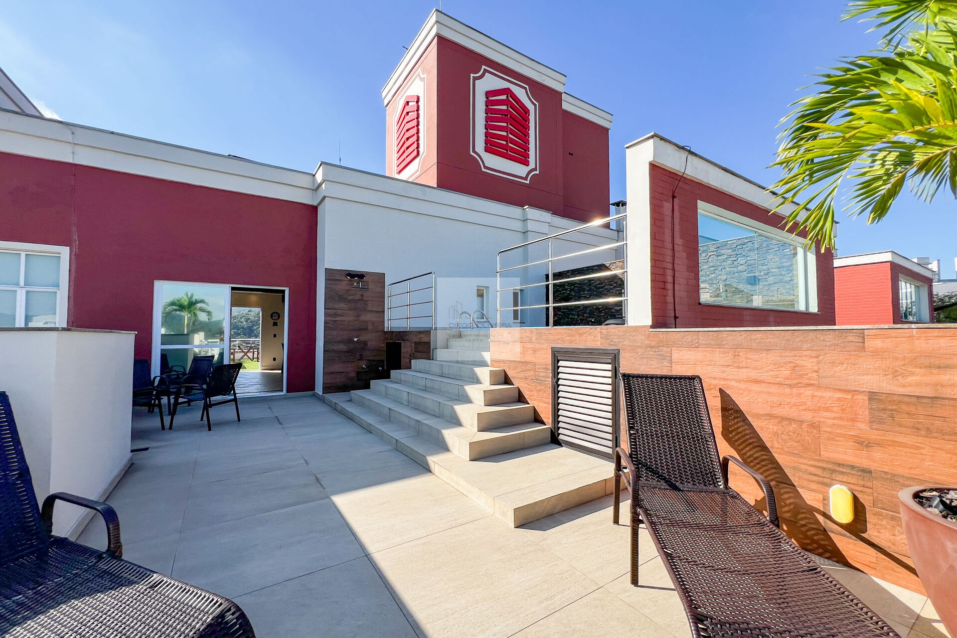 - Terraço externo com grama sintética.