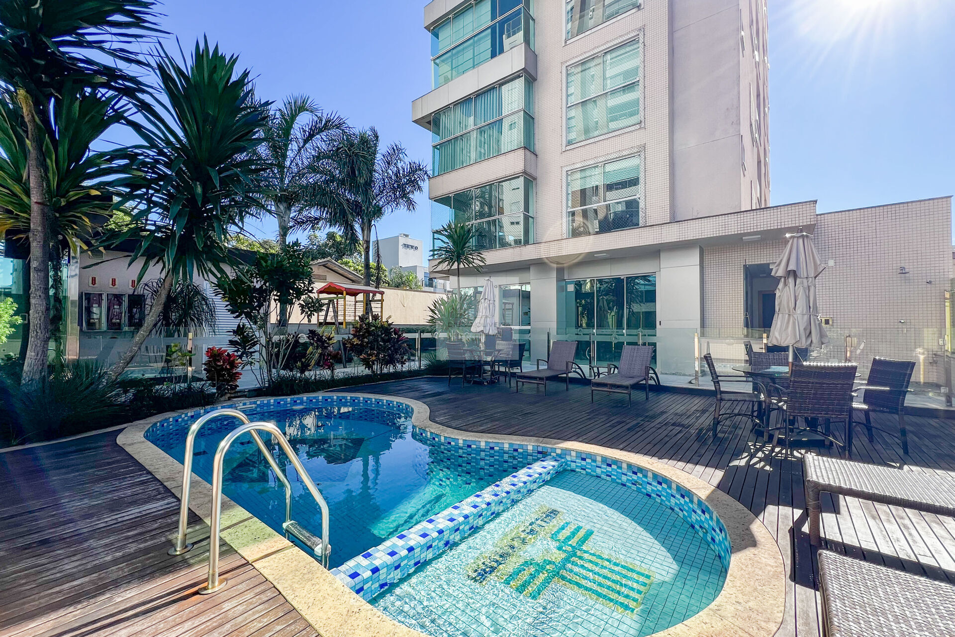 • Piscina climatizada com raia e deck;