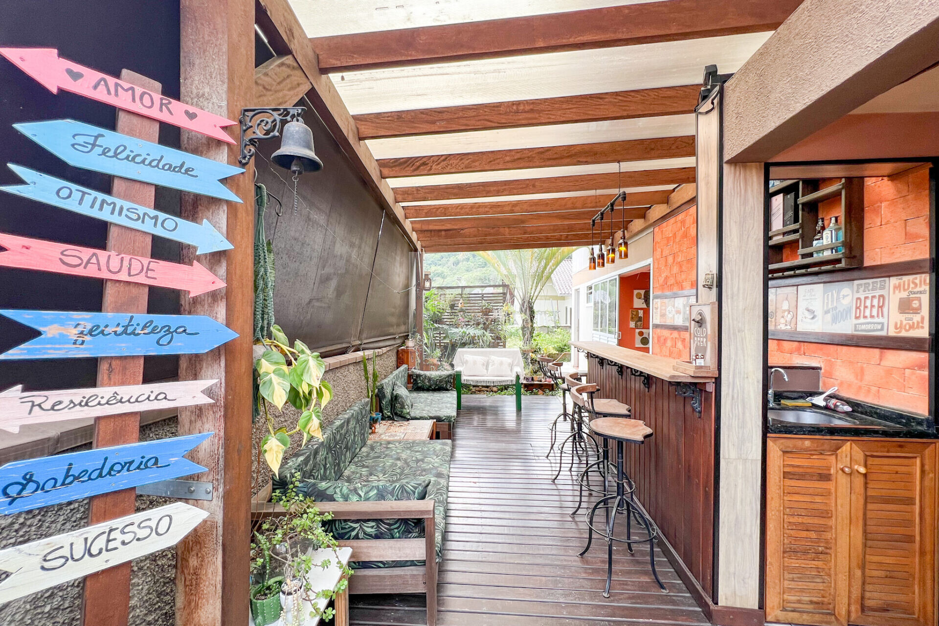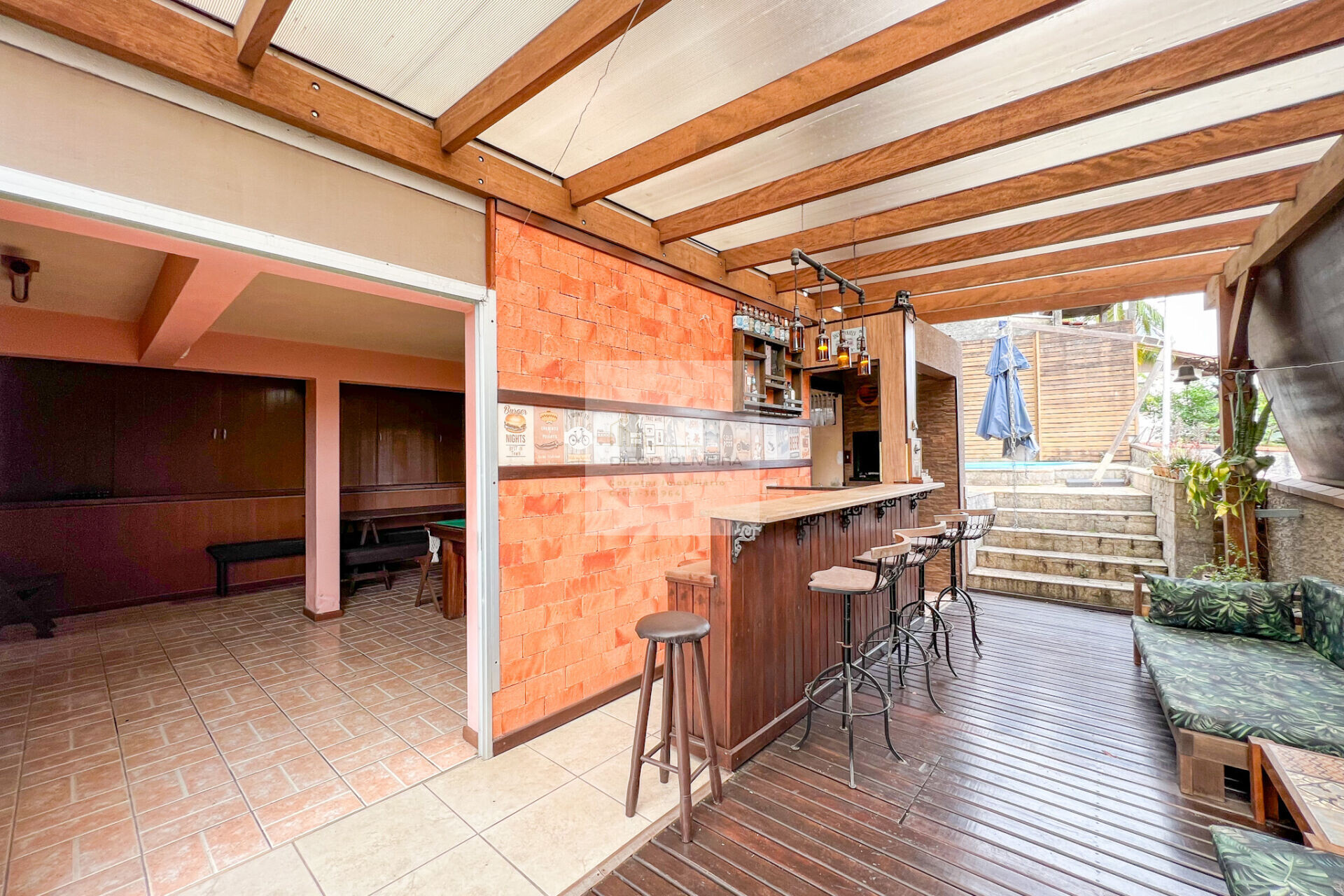 Ainda possui uma área de festas com piscina, espaço para receber a família e amigos em meio a muito verde, espaço para jogos, lavabo e fogão a lenha.