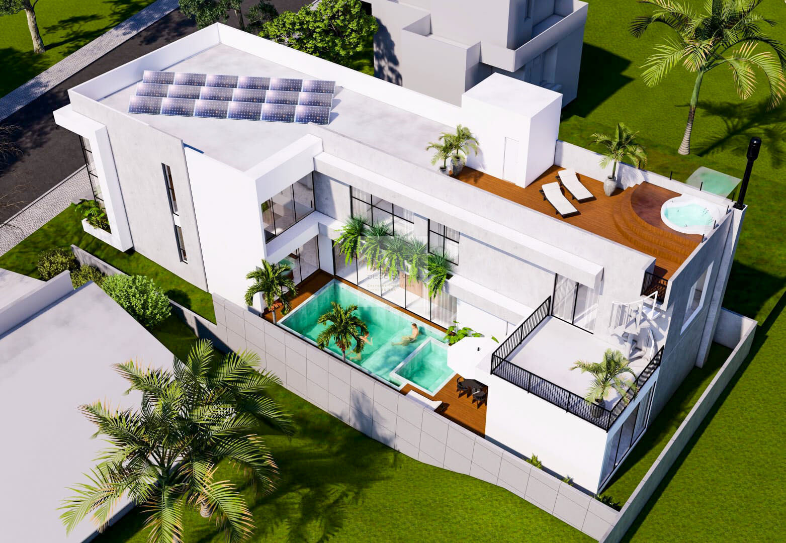 Espera para os ar condicionados e energia fotovoltaica para toda a casa e pra aquecimento da piscina.